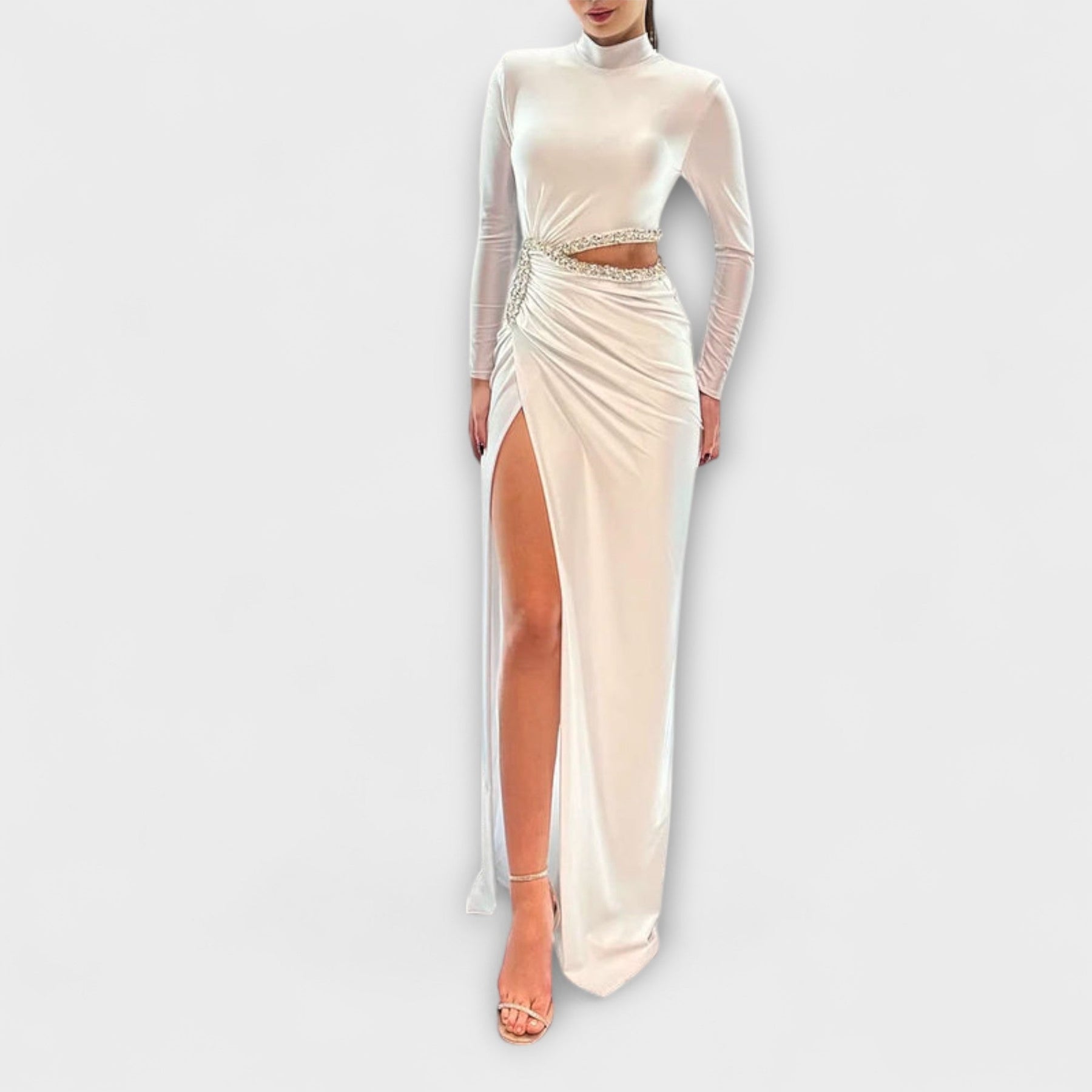 Scopri l'incanto del Marini | Abito bianco con dettagli in strass, un capo che trasforma ogni momento in un'esperienza indimenticabile. Questo abito è pensato per chi desidera esprimere la propria personalità con grazia e raffinatezza, avvolgendosi in un abbraccio di comfort e stile. Ogni dettaglio è curato con passione, per offrirti un look che cattura l'attenzione e il cuore.
